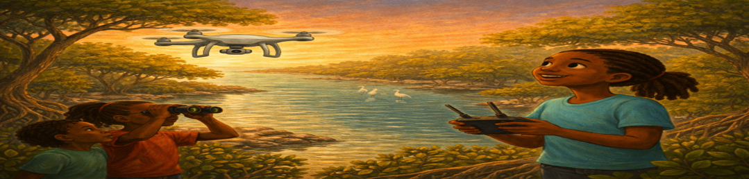 Voices from the Sky is a youth-led e-book of short, hopeful stories imagining how drones, data, and science can help protect wildlife, forests, rivers, and coastlines. Stories are written by young people and illustrated for easy classroom and community use. The focus is on creativity, ethics, and practical thinking around technology for good, not technical instruction.